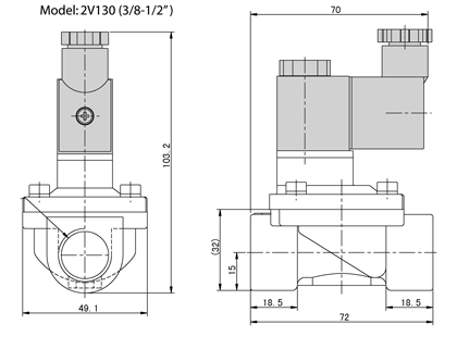 Solenoid Valve Specifications and Dimensions: 2V130-250 Series