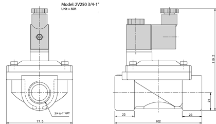 2V130-250 Series 2/2 Pilot Operated Diaphragm Normally Closed Solenoid Valve: