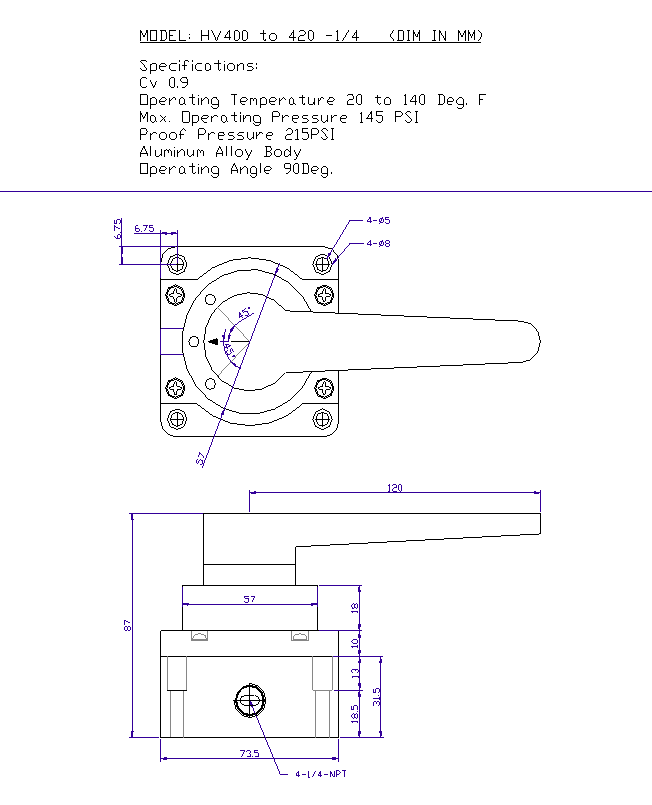 Hand Valve: 4 - 1/4" NPT ports, 2 position, 4 way |