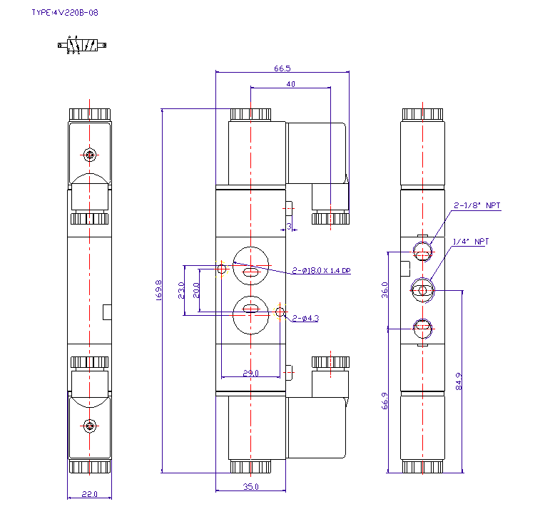 Download CAD Drawings:   4V210-1/4   4V220-1/4   4V230-1/4