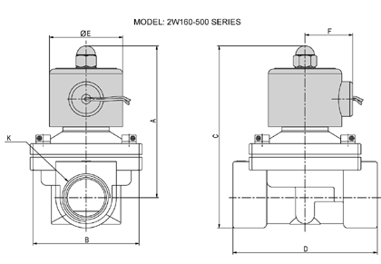 | Model: 2P160-250/2PO160-250 Series Solenoid Valve Dimensions |