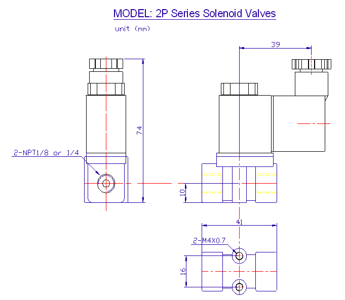 | 2P035-1/8 | 1/8" | 1 = 12VDC 2 = 24VDC 2A = 24VAC 3 = 110VAC 4 = 220VAC (50/60Hz) |